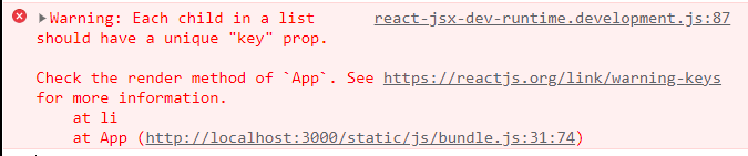 React는 기본적으로 list에 있는 모든 item을 인식하기 때문에 같은 컴포넌트의 list를 render 할 때는 key라는 prop을 추가하라고 뜨는 것이다.